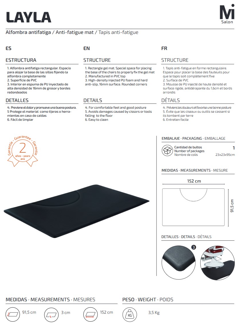 - Alfombra antifatiga rectangular. Previene el dolor y promueve una buena postura.