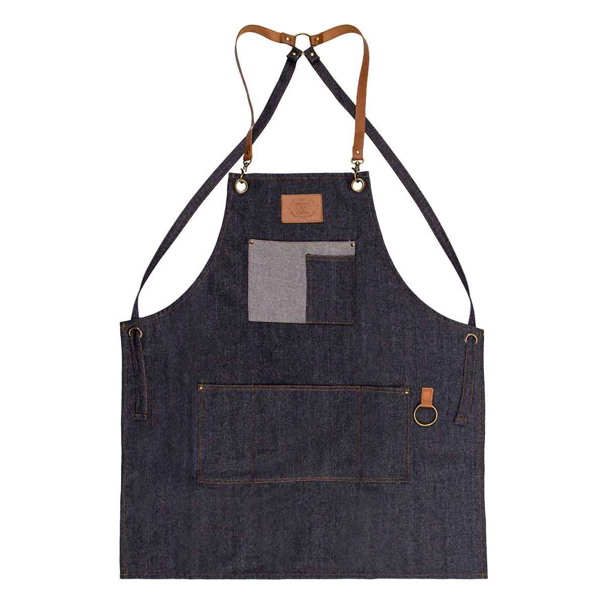 Compuesto por un material muy resistente en denim oscuro y unas sisas de cuero marrón, se trata de un elemento indispensable para realizar los cortes y arreglos de barbería aportando ese toque Old School.