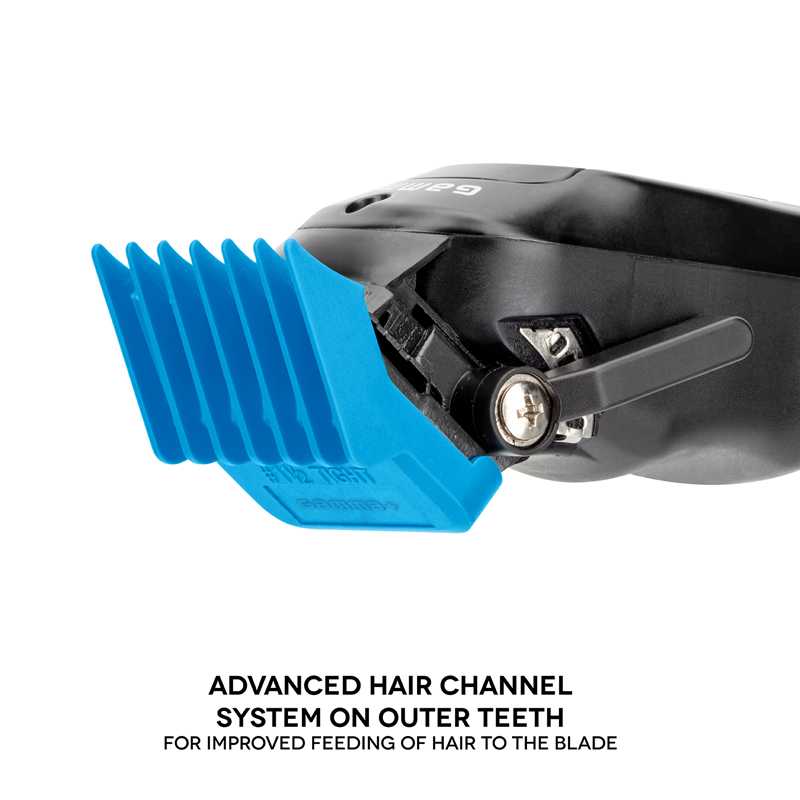 - Sistema avanzado de canales en los dientes exteriores para mejorar la introducción del pelo en la hoja.