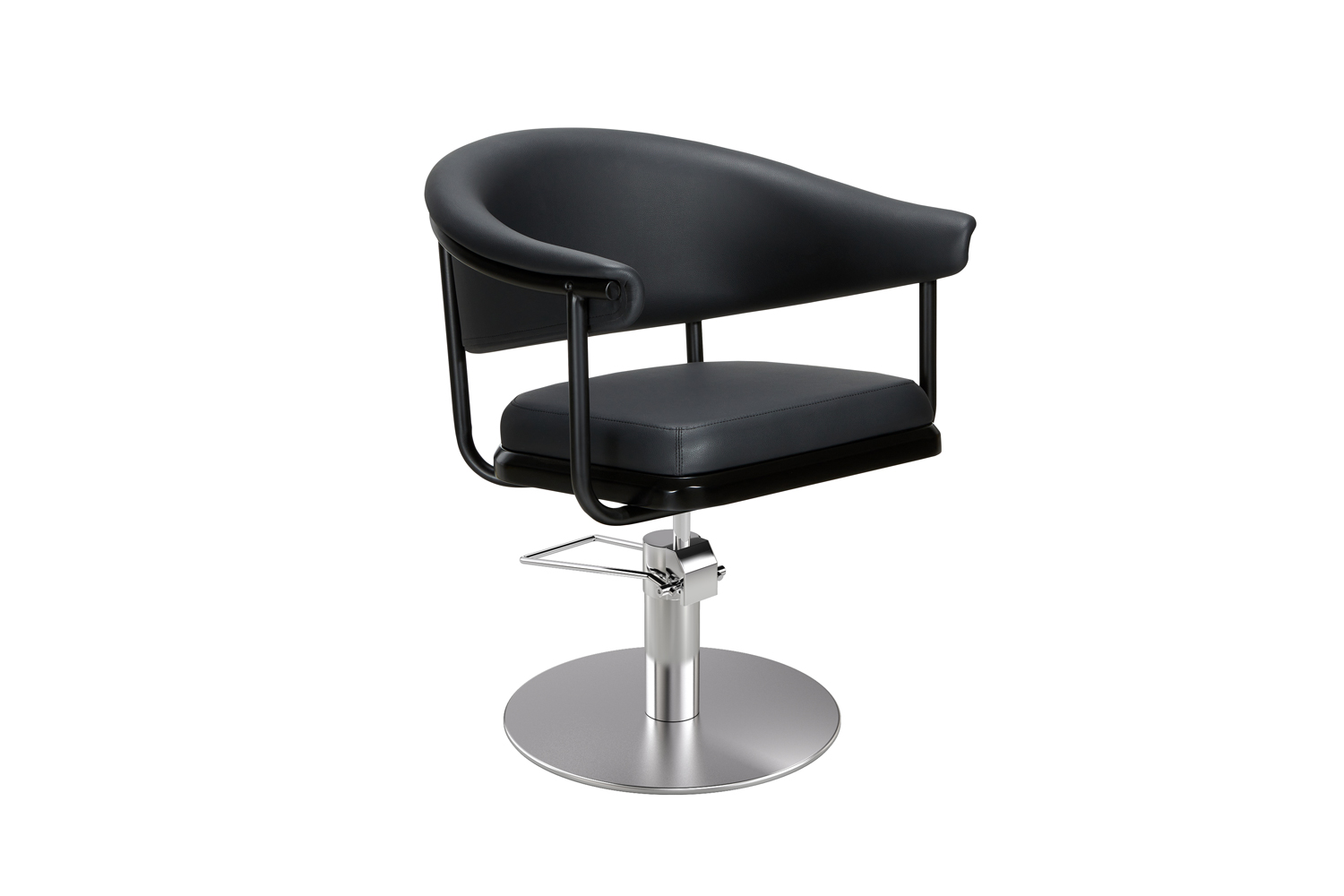 Sillón de peluquería de líneas depuradas y con estructura tubular.